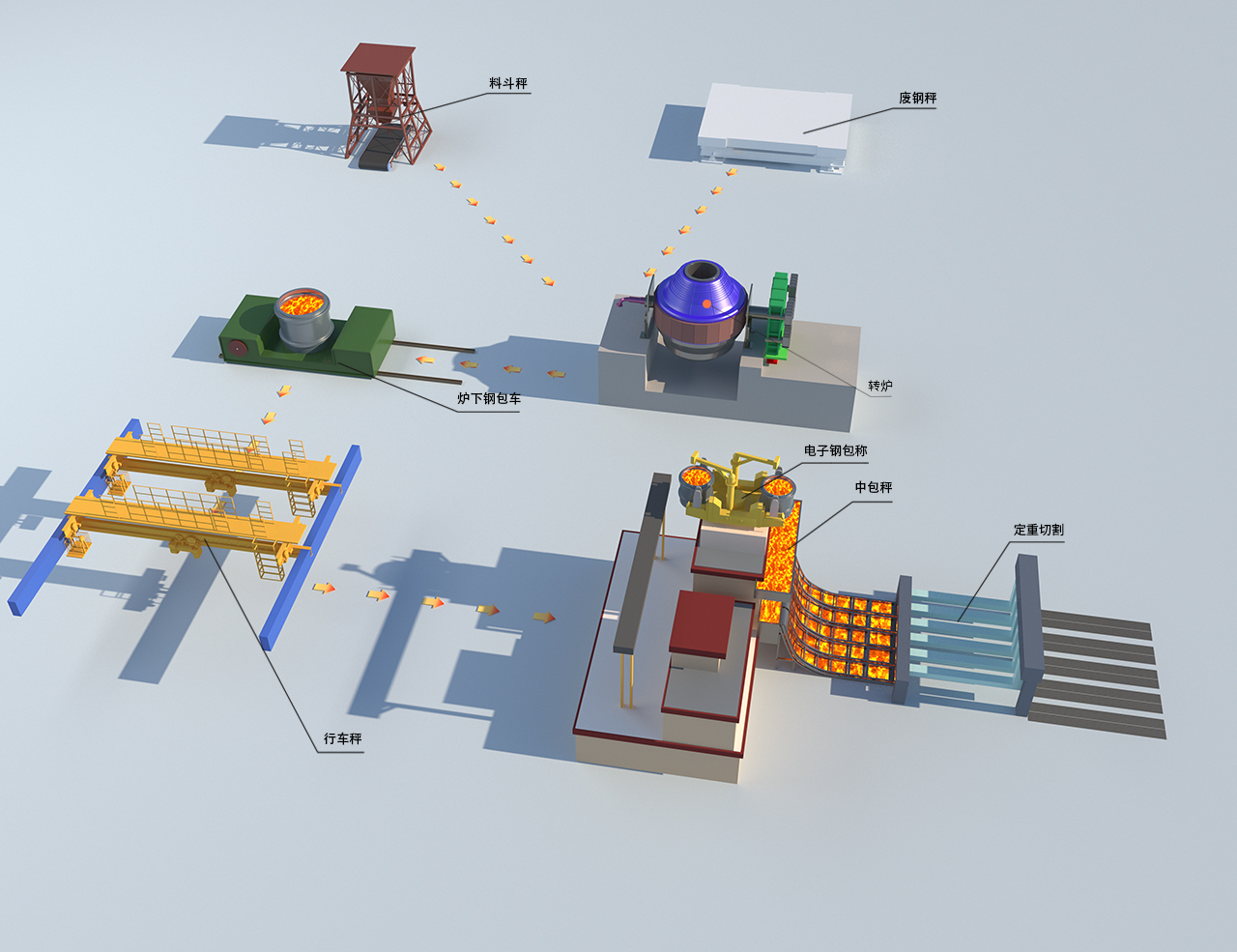 廢鋼秤是對(duì)轉(zhuǎn)爐加入廢鋼進(jìn)行稱重的計(jì)量器具,形式也分為很多種,一般有地上平臺(tái)式,臺(tái)車上平臺(tái)式等多種。